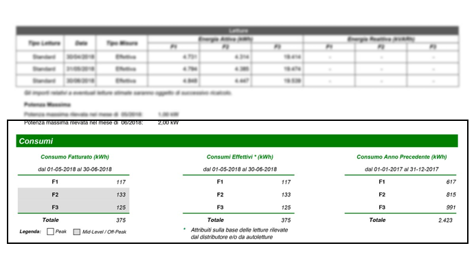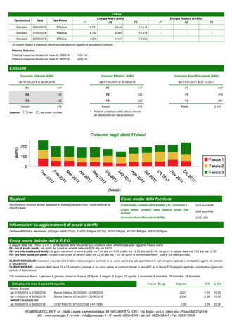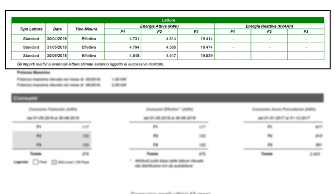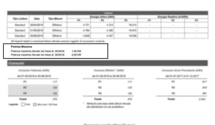 Qui vengono indicati i valori della potenza massima rilevata nel periodo fatturato.