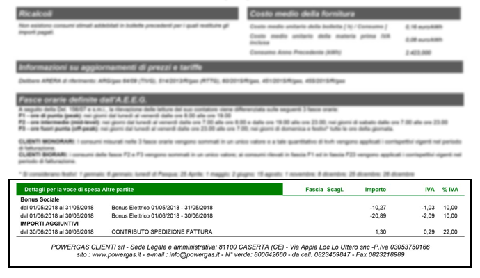 - Bonus sociale: dove vengono indicati gli importi relativi all’eventuale Bonus sociale.