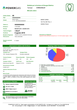 - Spese per la materia energia: Comprende gli importi fatturati relativamente alle diverse attività svolte da Powergas per fornire l’energia elettrica al cliente finale.