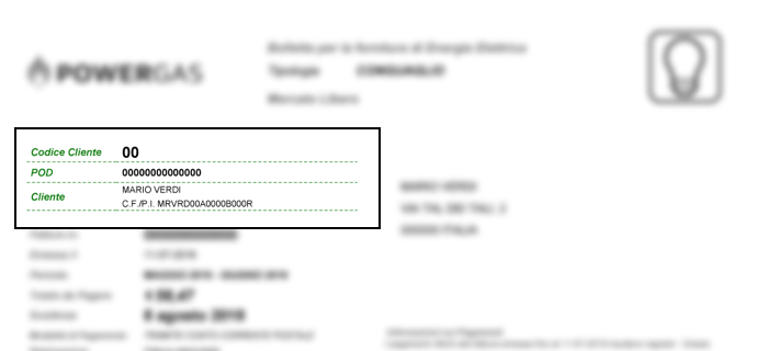 Qui viene indicato il suo codice cliente da utilizzare per le comunicazioni con Powergas.
