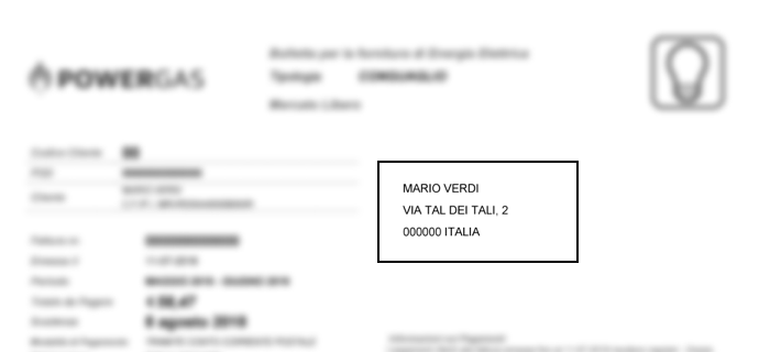 Qui viene indicato l’indirizzo a cui viene recapitata la fattura.