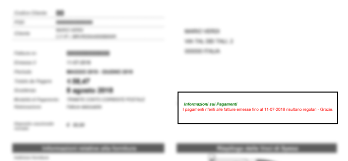 Qui viene indicata la sua situazione riferita ai pagamenti effettuati e l’eventuale indicazione di fatture che alla data di emissione della stessa non risultano ancora saldate.